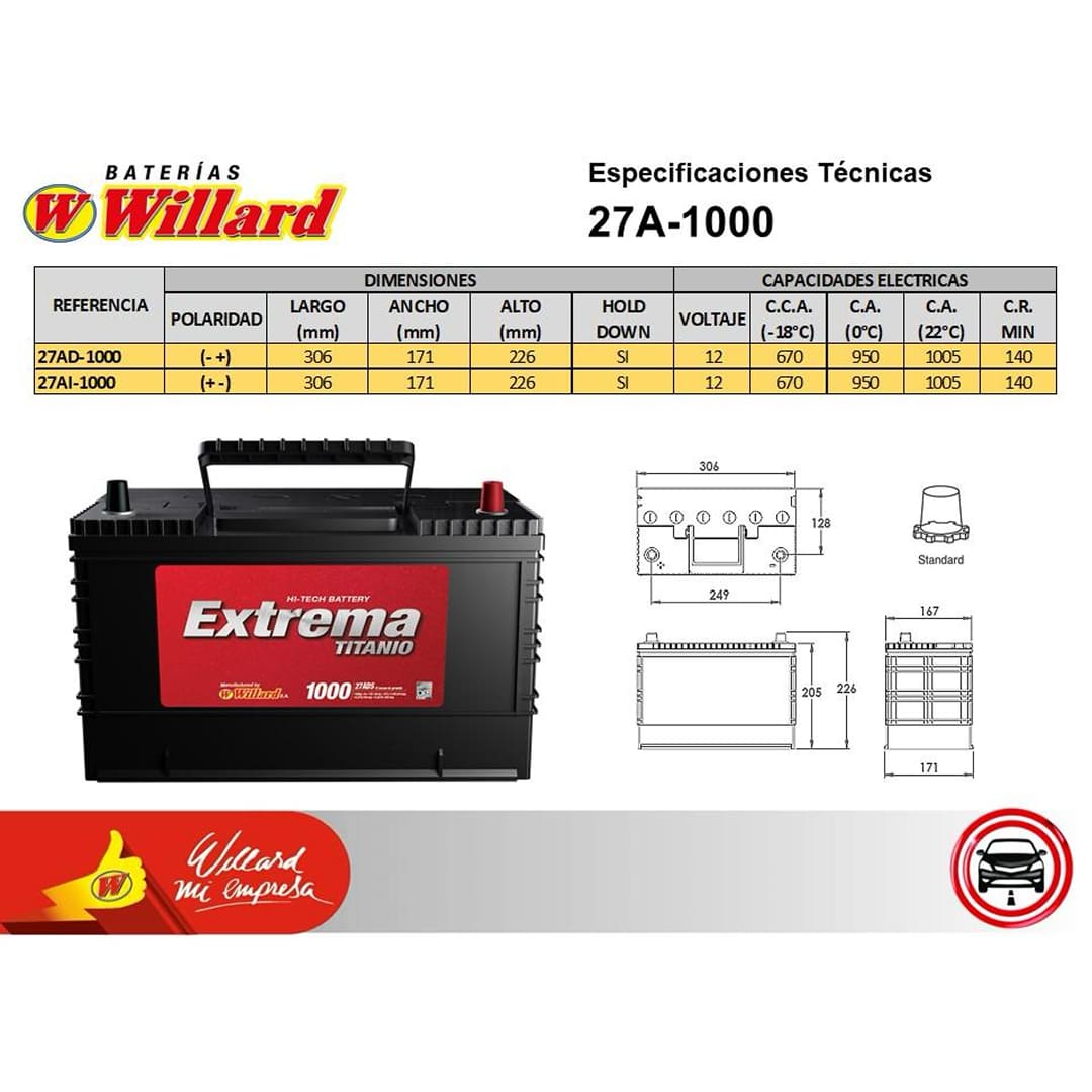 Arranque en frio-18°C (C.C.A.): 670