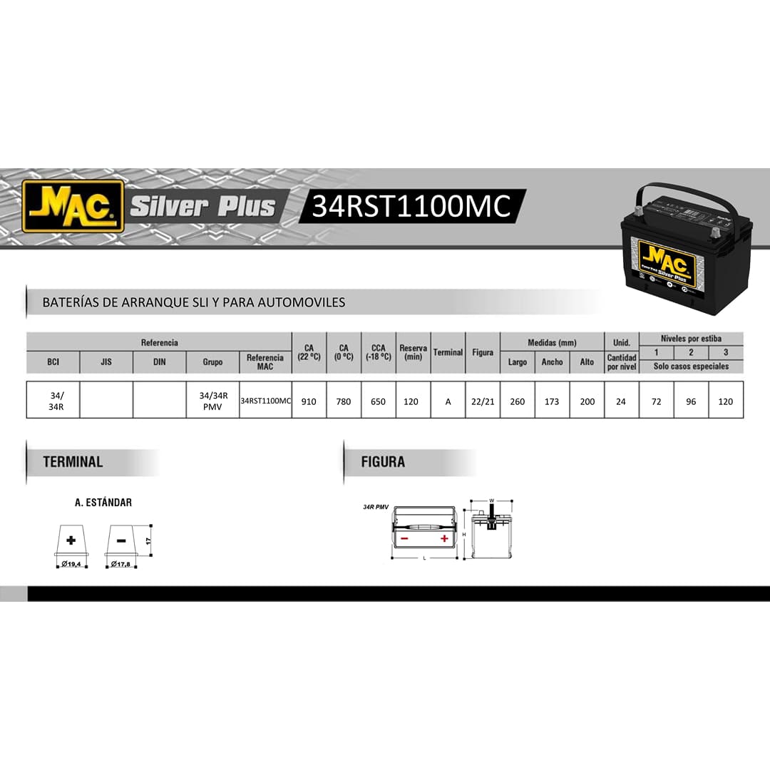 Batería Caja 34RST 1100 Amperios | MAC SILVER