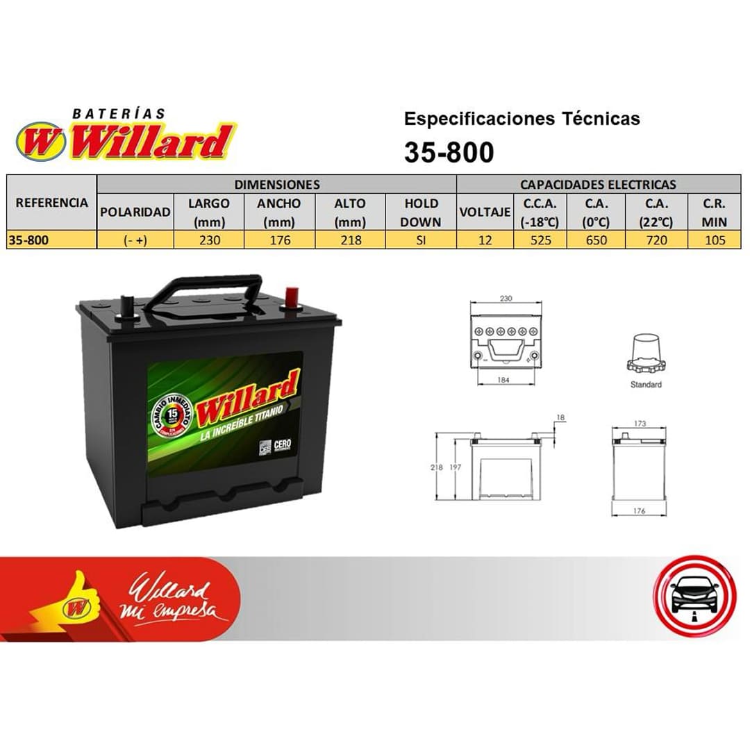 La batería WILLARD 35- 800 de 12 Voltios ofrece un arranque potente y confiable para distintos tipos de vehículos. Plomo‑ácido reforzada con aleaciones avanzadas, gran resistencia a vibraciones y temperaturas. Garantiza encendidos rápidos en clima frío o caliente y un suministro estable durante picos de demanda. Su construcción robusta reduce vibraciones y ayuda a lograr una vida útil prolongada, ideal para quienes buscan seguridad y respaldo diario.