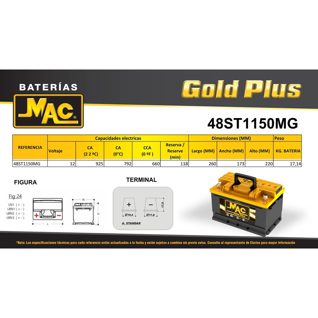 Batería Caja 48ST 1150 Amperios | MAC GOLD